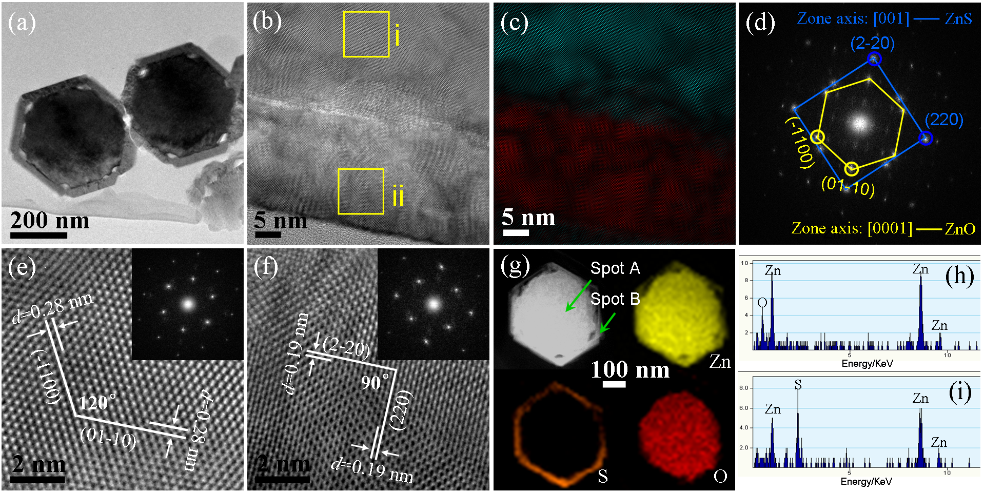 Synthesis of ZnO/ZnS heterostructures in thermodynamic conditions generally results in the wurtzite (WZ) structure of the ZnS component because its WZ phase is thermodynamically more stable than its zinc blende (ZB) phase. In this report, we demonstrate for the first time the preparation of ZnO/ZnS coaxial nanocables composed of single crystalline ZB structured ZnS epitaxially grown on the WZ ZnO nanorod via a two-step thermal evaporation method. The deposition temperature is believed to play a crucial role in determining the crystalline phase of ZnS. Through a systematical structural analysis, the ZnO core and the ZnS shell are found to have an orientation relation of (0002) WZ ZnO//(002) ZB ZnS and [01-10] WZ ZnO//[2-20] ZB ZnS. Observation of the coaxial nanocables in cross-section reveals the formation of voids between the ZnO core and ZnS shell during the coating process, which is probably associated with the nanoscale Kirkendall effect known to result in porosity. Furthermore, by immersing the ZnO/ZnS nanocable heterojunctions in an acetic acid solution to etch away the inner ZnO cores, hexagonal shaped ZnS nanotubes orientated along the [001] direction of ZB structure were also achieved for the first time. Finally, the optical property of the hollow ZnS tubes was investigated. It was found that the tubes can give a strong green emission which may originate from some self-activated centers, vacancy states, interstitial states or structural defects. However, for those tubes with residual ZnO located on tops, they showed much lower emission intensity due to the type-II band alignment of ZnO/ZnS heterojunction that can efficiently decrease the recombination of the electron-hole pairs in both ZnO and ZnS. Our study gives some insights on the controlled fabrication of 1D semiconductors with desired morphology, structure and composition and the as-synthesized WZ ZnO/ZB ZnS coaxial nanocables and ZB ZnS nanotubes provide ideal candidates for the study of optoelectronics of II-VI semiconductors at the nanoscale.